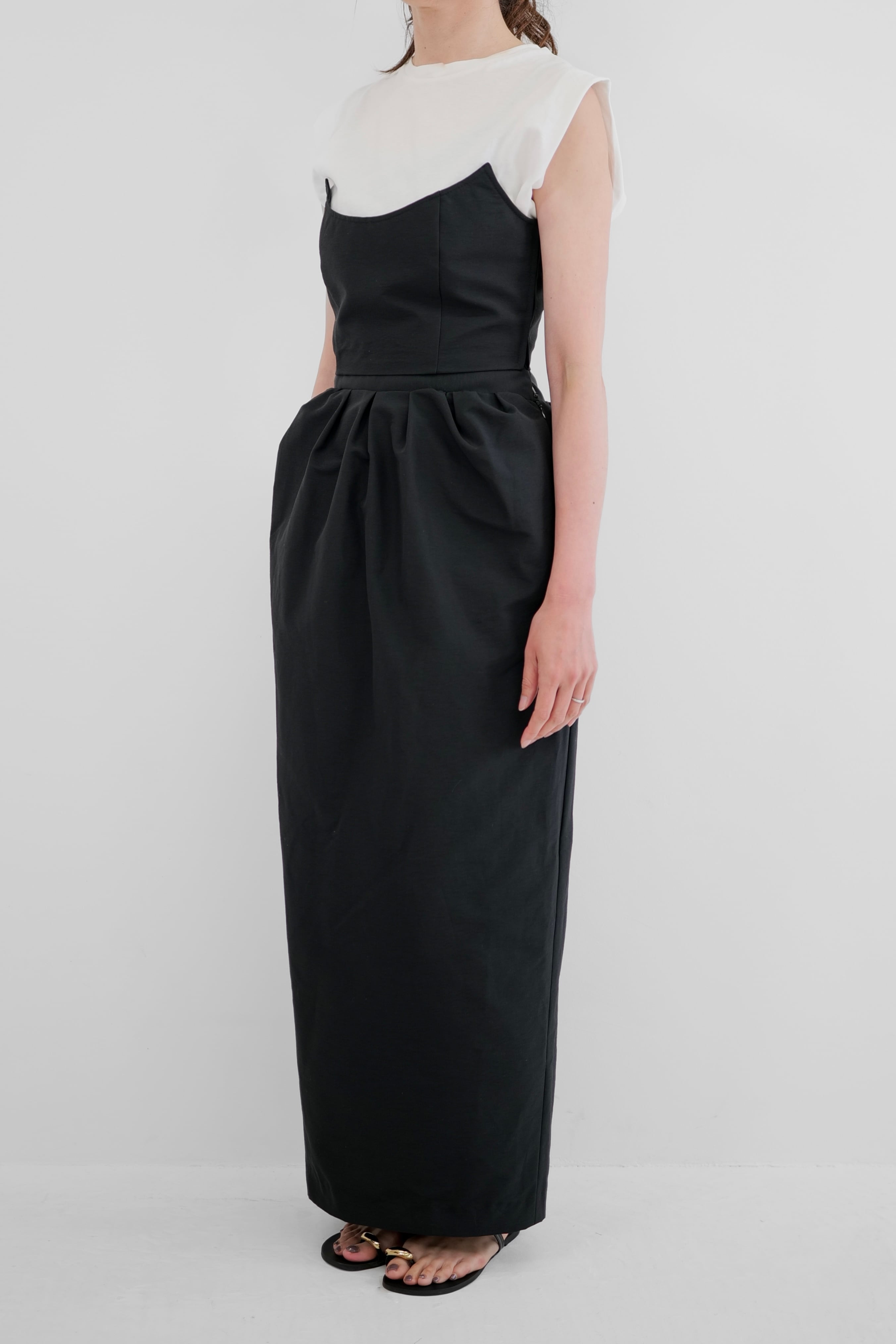 タイトなコクーンスカートとビスチェのセットアイテム。