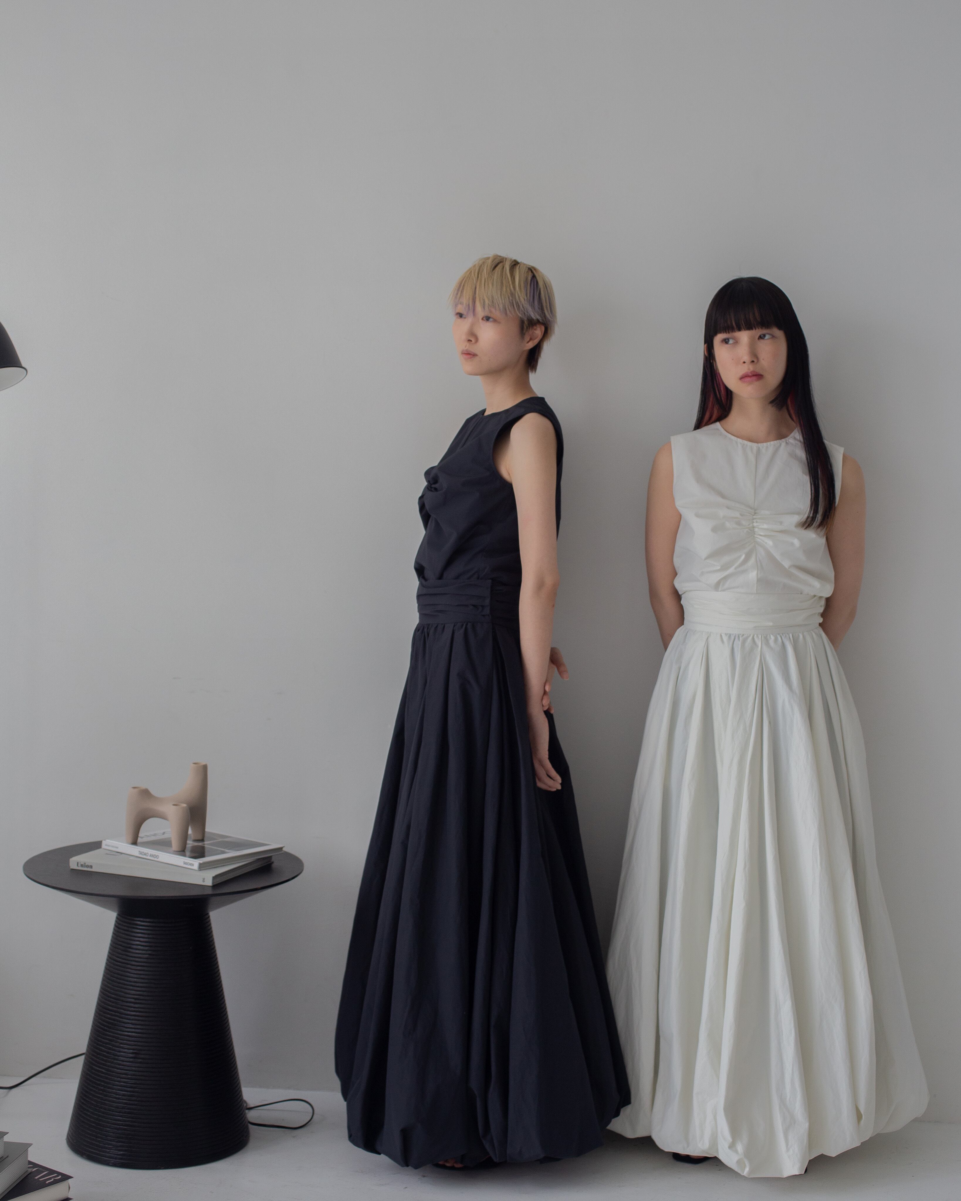 立体的なシルエットで美しいディテールか特徴のノースリーブ